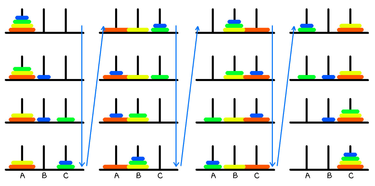원판이 4개인 경우를 그림을 통해 살펴보자.