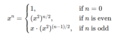 단순히 $xx…*x$ 반복하는 것이 아닌 주어진 $n$이 짝수인지 홀수인지에 따라 $n$을 절반씩 줄여가며 순환적인 방법으로 1(탈출조건)에 도달하게 할 수 있다.