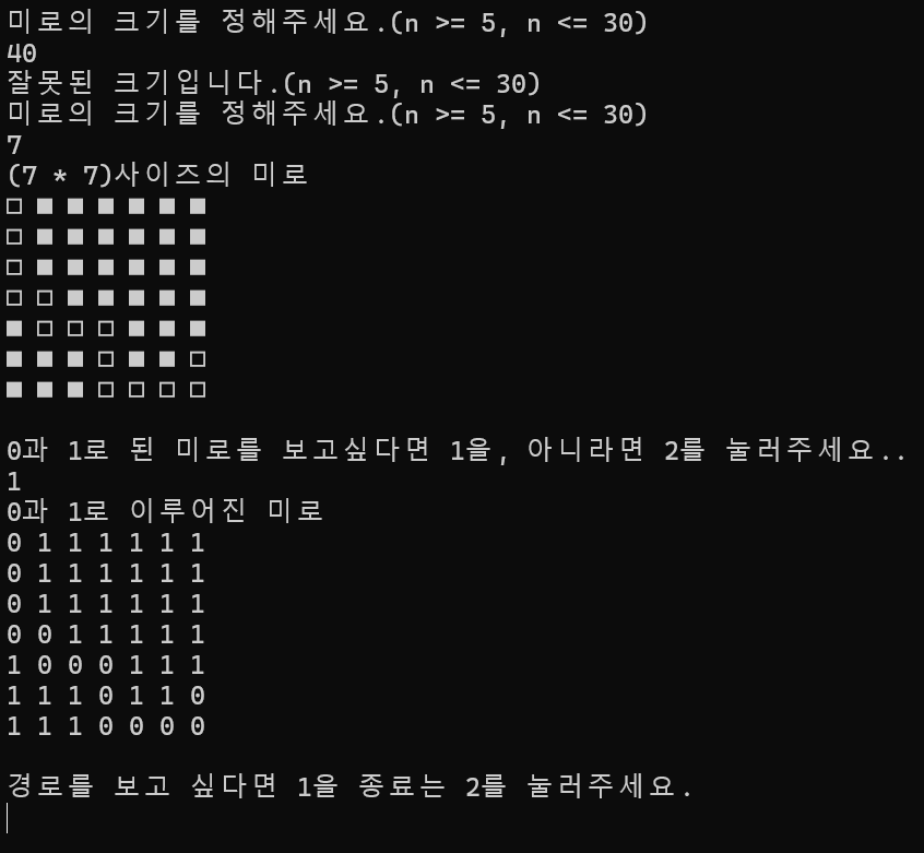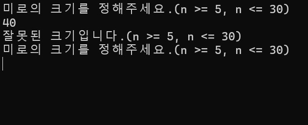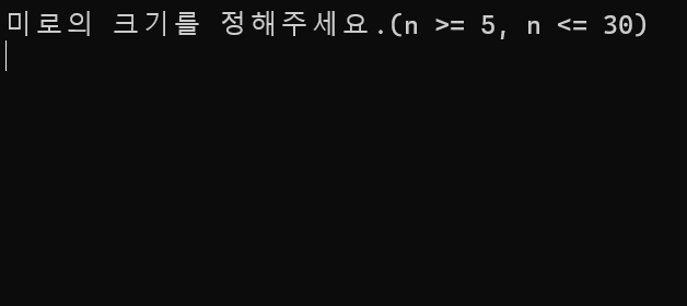 - 미로의 크기 n 입력 받기 (n >= 5, n <= 30)